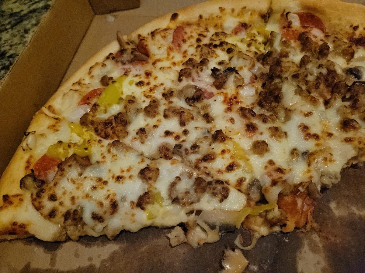 First time to give Gino's a try. They are located in the Shell gas station which threw us off at first. We got an 18in Italian sausage, pepperoni, onion, mushroom, & banana peppers. My husband liked it but said there was a lot of cheese but he likes that. I would definitely ask for light cheese next time.I would not get the mushrooms again as they we canned, not fresh, which I prefer. I would also ask for it to be baked a little longer as the crust was a little too limp for all the weight of the cheese. We had to try a slice when we picked it up while it was piping hot. Then, when we got home, put it in a pan on the stove to crisp up the crust just a bit.